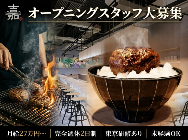仕事内容 【⭐採用枠わずか・立ち上げ限定募集⭐】 東京で高評価を得ているハンバーグ専門店が 福岡に初出店。 今回は “立ち上げメンバーのみ”の募集です。 ※採用予定は少数 ※研修枠が埋まり次第終了 ※次回募集は未定 気になっている方は、早めのエントリーをおすすめします⏩ 【なぜ今が特別なのか?】 オープニングだからこそ―― ✨ 全員が同じスタート ✨ 役職ポジションが空いている ✨ 店づくりに本気で関われる 既存店の追加採用とは、 経験できる濃さがまったく違います。 【⭐仕事内容⭐】 福岡初出店となるハンバーグ専門店で、 オープニングメンバーとして店舗運営全般をお任せします。 でも―― これは、 「ホールスタッフ募集」でも 「キッチン募集」でもありません。 あなたにお願いしたいのは、 “この店の最初の物語を一緒につくること”です。 ⏩具体的には ✅ 仕込み・調理・盛り付け ただ焼くだけではありません。 目の前で肉が焼ける音、香り、お客様の表情。 そのすべてを体験として届けます。 ✅ 接客・料理提供 「美味しかった」 その一言が、やりがいになります。 飲食の仕事の本質を味わえるポジションです。 ✅ 店舗づくり・チームづくり オープニングだからこそ、 人間関係も、雰囲気も、ルールもゼロから。 あなたの意見が、そのままお店の文化になります。 ✅ 将来的には運営にも挑戦 売上管理やスタッフ育成。 “任される側”へとステップアップできます。 ⭐この会社に入るメリット ① 「あの店、立ち上げからいたんだよ」と言える経験 新店舗の創業メンバーという経験は、 何度も巡ってくるものではありません。 人生の中で、 “ゼロから何かをつくる瞬間”は意外と少ない。 その一回を、ここで掴めます。 ② 飲食=きつい、を終わらせる 完全週休2日制。 月給27万円スタート。 賞与年2回。 やりがいだけで疲弊する働き方は、ここにはありません。 ③ 未経験でも、本気で育てます 東京で約2カ月間の研修。 基礎から学べる環境を整えています。 「できるかな」ではなく 「やってみたい」で大丈夫です。 ④ 今のままでいいのか、と思っている人へ 毎日同じ作業。 なんとなく続けている仕事。 本当は、もう少し成長したい。 そんな気持ちを持っているなら、 この環境はきっと合います。 オープニングは、 あとからは入れません。 完成された店に入るのではなく、 “最初の一員”になる。 それは少し勇気がいります。 でもその分、 得られる経験は大きい。 「ちょっと気になる」 その気持ちがあるなら、まずは話を聞いてください。 未来を変えるきっかけは、 意外とこういう募集から始まります。