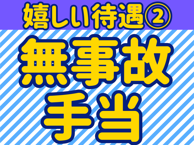 【保険制度】 雇用保険、労災保険、健康保険、厚生年金 待遇・福利厚生 【福利厚生】 ◆退職金制度(社内規定による) ◆社会保険完備 ◆交通費規定支給 ◆定年制度(65歳) ◆ドラレコ・ETC搭載 ◆トラックは基本全部自分専用車(ドライバー) ◆住宅・家族手当 ★無事故手当有(ドライバー) ★中型⇒大型の資格取得支援制度有(規定有)