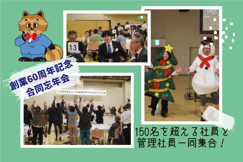 職場環境 <数字で見る当社> ・男女比はほぼ5:5 ・従業員数規模は現在約980名 ・平均年齢43.5歳 ・女性管理職も20%近く活躍 ・平均有給取得日数10日(連休取得可) ・創業60周年を迎えました!