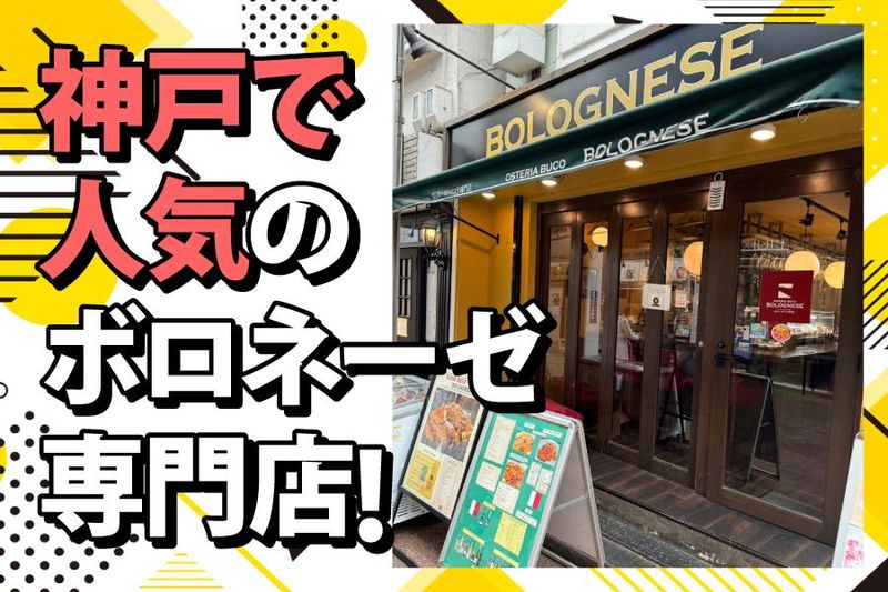 仕事内容 《神戸で人気のボロネーゼ専門店!》 《週2日~、1日4h~OK!》 《日替わりの絶品まかない付き♪》 自慢のボロネーゼと、 セントラルキッチンで作り方を確立した こだわりの4種のパスタを提供しています。 ボルチーニやパンチェッタなど トッピングで様々なバリエーションが楽しめる為、 新規のお客様から常連さんまで 多数の方が訪れる人気店! 【仕事内容】 ・オーダーのお伺い ・料理の配膳 ・ドリンク作りなど 未経験の方も一から学べる環境を用意。 あなたのチカラで お店を盛り上げていきませんか。 【20代~50代までのスタッフがメインで活躍中!】 社員も多いので 分からないことがあればスグ質問できます! 常連様も多く、 お客様もカップル~ファミリーまで… 幅広い方々にご利用頂いています。 スタッフを含め 気さくな方が多いのでノビノビお仕事できますよ! 【本店スタッフにインタビューしてみました!】 仕事がない日にも友達と一緒に ご飯に来るスタッフがいるくらい居心地の良い職場です。 卒業したスタッフもよく遊びにきてますよ! 同年代のスタッフも多いので、 趣味の話で盛り上がったりと和やかな雰囲気です。 あなたにとって自慢のバイト先になること間違いナシ! お仕事終わりには絶品の本格イタリアンのまかないアリ! 日替わりなので「今日の賄いは何かな~」と ウキウキしながら働くstaffも(笑) 【お店について】 元町本店 カウンター13席、4名テーブル×2席、本店隣に貸切の個室(4名〜8名テーブル) 三宮店 カウンター8席、テーブル4席のどなたでも気軽に来店いただける雰囲気が特徴! 三宮店は2024年2月にリニューアルオープン! 北イタリアの海岸沿いにある「気さくなレストラン」をイメージした 木目とベージュを基調とした店内はカジュアルで親しみやすい雰囲気のお店。