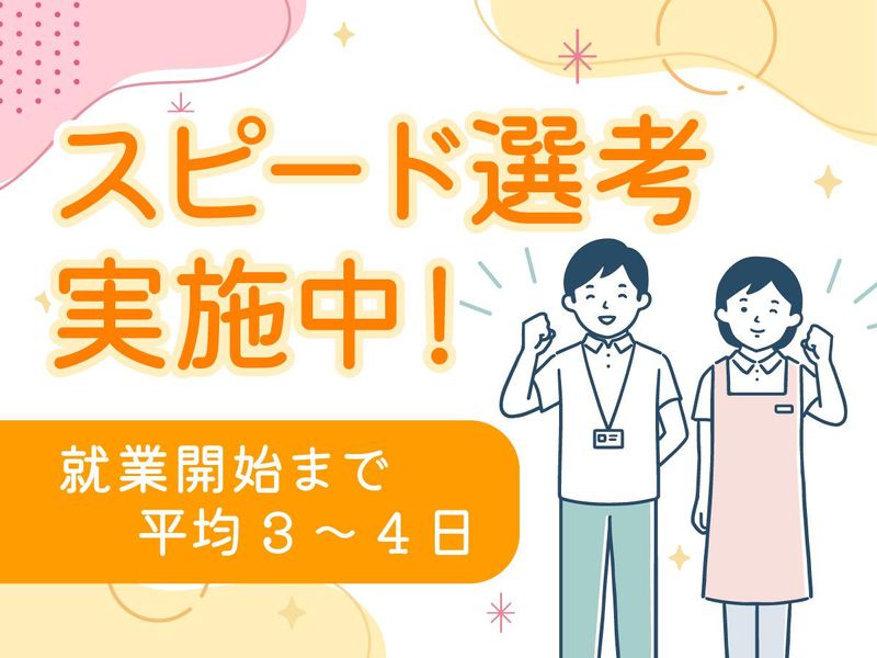 選考プロセス 応募を確認でき次第、 専任スタッフがお電話・メールにてご連絡します。 「まずはどんなお仕事があるか確認したい」 「来月から働きたい」 「スグに働きたい」 「施設見学したい」 など、お気軽にご相談ください! <選考の流れ> ①応募・希望条件入力 ↓ ➁面談・お仕事紹介 *WEB面談も実施中! 来社不要で登録、お仕事紹介が可能です! ↓ ③施設見学 ↓ ④就業開始 *就業開始まで平均3~4日! スピード選考実施中! もちろんじっくり悩みたい方もOK
