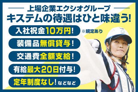 仕事内容 ■充実の防寒対策!キステムで働く魅力 足元の冷え対策&ウェアのリニューアルで快適に ・防寒ウェア:一部を保温性の高い最新防寒着に入れ替え、寒冷地用ベスト、防寒ズボン ・足元対策:つま先用カイロ、靴の支給 ・業務サポート:手袋、警備員用バッグ(用具一式収納可) 実際にキステムで働くスタッフはこんなメリットを 感じながら活躍しています! 【60代・セカンドキャリアの方】 「年金だけでは不安で始めました。ここは定年制度がなく、年齢で給与が下がることもありません。 有給休暇も最大20日付与されるので、体力的に無理なく安定して働けるのが一番の魅力です。」 【40代・警備経験者】 「経験者として待遇の良さに惹かれました。交通誘導2級で日給+500円、 交通費・ガソリン代も全額支給。雨天中止もほぼ無く、日給保証もあり。 上場グループで安定感が違います。」 【30代・Wワーカー】 「週2日からOK でシフトの融通が利くので副業に最適です。早く終わっても日給保証があり、 交通費も全額支給。制服や防寒着(ヒートベスト)、ヘルメット、安全靴、カイロなど、 全て無料で貸してくれるので、自己負担ゼロで始められました。」 【50代・未経験転職者】 「50代未経験で入社。年齢で給与が下がることもなく、定年もないので長く働けます。 雨天中止がほぼなく、日給保証で収入が安定するのが一番。 防寒着、カイロも無料支給で寒さ対策もばっちりです。」 ■未経験大歓迎!若手~シニアまで幅広い年代が活躍中! NTT電話回線工事現場にて、 歩行者や車が安全に通行できるように 声掛けや交通誘導をするお仕事です。 お電話でのご応募も受け付けております! 連絡先:0120-697-183 / 採用担当まで ────────────────────────── ~株式会社キステムで働くメリット~ ●プライム市場上場グループの警備会社 ●入社祝い金制度あり(10万円) ●交通費全額支給 ●毎年賃金改定実施 ●日給保障制度あり ●装備品は会社から無償貸与/自己負担なし ●有給は最大20日付与 ●定年制度なし、シニアの方大歓迎 ●交通誘導検定2級保有者は日給+500円 ●資格取得支援制度あり! ────────────────────────── 【1日の流れ】 出勤前に運転を要する方は 毎日アルコールチェックを実施 ↓ 現場到着次第、 作業前ミーティングを行った後、 誘導業務を開始。 ※現場は1件~2時間程度。 ※弊社では1日に数か所の現場で作業 ↓ 移動 ※移動中も給与は発生いたします。 ↓ 別の現場にて誘導業務を実施 ↓ 作業後は、翌日の現場を 自社のチャットアプリにて確認 ────────────────────────── 【集合場所について】 下記いずれかに集合頂いた後、現場に移動いたします。 1.新設"立飛センター” 【〒190-8517東京都立川市栄町6-1-1】 2.エクシオグループ株式会社府中技術センター 【〒183-0043 東京都府中市東芝町2-6】 3.NTT三鷹ビル 【〒181-0013 東京都三鷹市下連雀4-14-28】 ────────────────────────── 【当社について】 NTTグループの通信インフラ工事に特化した エクシオグループ(プライム市場上場)の 警備会社です。 現在、大手通信会社や行政など、 幅広くサービスを展開しており、 安定した基盤を誇っております。 資格取得支援や充実した福利厚生を ご用意しておりますので、未経験の方でも 安心してスタートいただけます! ────────────────────────── *──────────────────────* 【勤務拠点について】 ・拠点名:西東京支店 ・住所 :東京都国分寺市南町3-27-7 白馬ビル4F ・TEL :050-3490-9531 *──────────────────────* ■業務に関わる装備品を一式貸与 自己負担は一切なし! 制服・靴・ヘルメットなど 業務に関わる装備品は無償貸与! 自己負担は一切ございません! また、季節ごとに防寒服や ファン付き空調服なども無償貸与します。 ■最大20日付与される有給休暇 1年目は10日付与、以降1年毎に増加し、 7年目以降は最高20日! 未取得の場合、翌年に繰り越し可能の為、 長期勤務されている方からは ご好評いただいております。 ※有給休暇の付与に関しては規定あり ■定年制度なし 当社では定年制度も、 年齢による給与変動もございません。 20代・30代を始め、40代・50代の 中高年の方や60代のシニアの方まで 全体の9割が未経験からのスタート。 定年後のセカンドキャリアとして 感謝される仕事に就きたい方や、 交通誘導警備の資格を活かしたい方は 是非お待ちしております。
