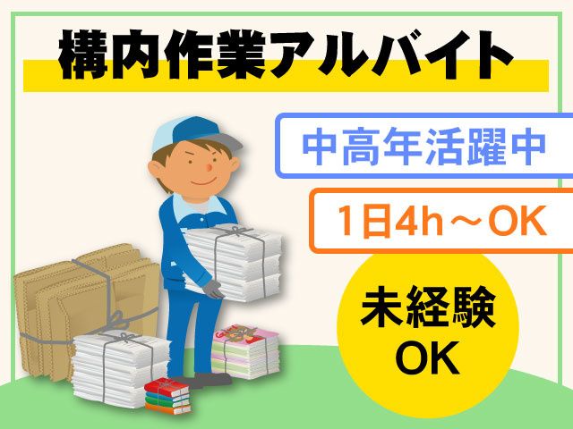 仕事内容 【アルバイト】 構内作業員を募集いたします! <仕事内容> アルバイトとして、 構内作業をお願いします。 主に、 古紙やプラスチック等の 選別・圧縮作業をしていただきます。 < 時間・曜日は応相談 > 1日の勤務時間は4時間から可能です。 ムリせず働ける環境なので、 ジブンのスタイルを優先して 働くことも可能ですので、 まずはご相談ください。 きっとプライベートと仕事の メリハリがついて効率よく働けます。 < 未経験OK > 未経験の方でも学びながら 仕事ができるので、 やりがいもありスキルアップの モチベーションに繋がっています。 子育て中の方や女性も在籍中です! < ミドル世代もOK > 今までの経験を活かしたい、 空いている時間で仕事を 探している方などまずはご希望を お聞かせください。 中高年の方も活躍している職場です。 ハローワークで仕事を探しているけど なかなかいい仕事が見つからない! そんな方も是非ご相談ください!