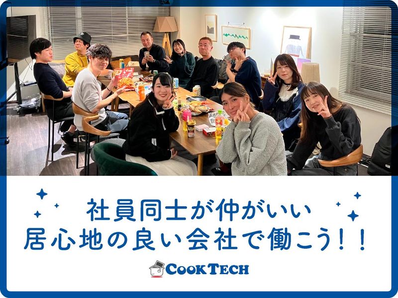 仕事内容 +++- ■飲食業、販売職だけで終わらない。 “ITサポート事務職”に挑戦! -+++ 「これからのIT関係の事務にチャレンジしたい!」 そんな気持ちに応えるのが クックテックです。 少数精鋭の12名だから、 代表とも先輩ともフラットに話せて、 悩んだらすぐ相談できる距離感です。 月1の懇親会やセミナー後の料理教室、 スポーツ交流など、 “現場は離れていても仲は良い”関係が 自然と続きます。 スキルは基礎からしっかり育成。 無理に背伸びしなくても 成長できる環境です。 「もっと成長したい」 「事務職に挑戦したい」 その前向きさを、ここで全部受け止めます。 完全週休2日制/残業0〜10h/ 月給22万円〜(年収例300〜450万円)。 +++- ■少数精鋭だから社員同士の仲も どんどん深まる! -+++ 正直、大きな会社ではありません。 普段は社員それぞれが クライアント先で仕事をしていますが、 定期的に懇親会を開催していて、 仲間意識の強さには自信があります。 想像してみてください。 月に1回は、 仕事抜きの懇親会で顔を合わせます。 年に数回、 人間形成やスキルアップに繋がる セミナーや勉強会を開催。 セミナー終了後には、 お料理の先生を呼んだ料理教室で みんなで一緒に料理を作って食べる… 時には、パートナー企業のメンバーも誘って 体育館を借り、バスケットボール大会など スポーツも楽しむ。 少人数の馴染みのメンバーが仕事抜きで、 何度も顔を合わせ楽しいことをするんです。 自然と仲良くなります。 ちょっと珍しい料理教室の開催も、 社員たちから 「自炊を始めるきっかけになった!」と 好評です。 +++- ■社長との距離も近い! キャリアややりたいことも相談可能。 -+++ 日本橋オフィスでは、 社長が近い距離にいて、 気軽に声をかけてくるような環境です。 懇親会などのイベントの際にも、 頻繁に顔を合わせるので、 誰もが社長と気軽に話せるように なるでしょう。 エンジニアとしての悩みや キャリアのことまで何でも 相談してみてください。 社長に直接、 自分の想いや気持ちを伝えられる。 その納得感やありがたみは、 働いてみれば、きっと おわかりいただけると思います。 +++- ■具体的な仕事は? -+++ ・IT関連の事務サポート職なので、 EXCELでの資料作成や PCや人員数の数量管理、 問合せ対応をお願いします。 【事務の未経験者の場合は?】 まずは資格取得の勉強をしながら、 基礎的なスキルアップを目指します。 できそうな作業のクライアント先に 無理なく参画となります。 【事務経験者の場合は?】 やりたい方向性を相談の上、 各プロジェクトに配属していきます。 【仕事の流れ】 お客様からのメールや電話での作業依頼 ↓ 同チームメンバーと協力して入力業務や依頼対応 書類作成 ↓ 会議にて進捗確認 【事業例】 ・金融(銀行/保険/証券)向けシステム保守サポート ・業務システムのSEサポート ・Webサイトへの記事配信 など +++- ■「人生が変わりました」と 言ってくれる社員もいます。 -+++ 社員も少数ですから、 誰も埋もれることがありません。 社長をはじめ先輩たちも 1人ひとりを大切な仲間と考え、 面倒を見てくれます。 会社が変われば仕事のキャリア、 社員同士の関係性、 プライベートの過ごし方… 全てが変わります。 それが実感してもらえる 環境になっていると自負しています。 実際、転職してきた社員の中でも 「入社後、人生が変わりました!」 と嬉しそうに言ってくれる者がいました。 それが本当か、どうか。 次はあなたが体験してみてください。 -