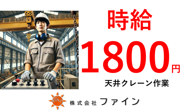 ☆高時給1800円☆天井クレーンの資格とスキルが活かせるお仕事です!夜勤なし!時間固定で働きやすい ☆お電話で「案件番号FI0064」を見てとお伝えください♪ ・高時給1800円 ・天井クレーンの資格が活かせる イチから丁寧にお教えするので未経験者でも安心して働いて頂けます。 近年話題になっている《SDGs》にも理解の深い多様性のある職場です。 残業がないのでプライベートも充実!! 大量募集につき友達同士のご応募も大歓迎!! 友達紹介キャンペーンもありますのでどんどん利用して下さい!!
