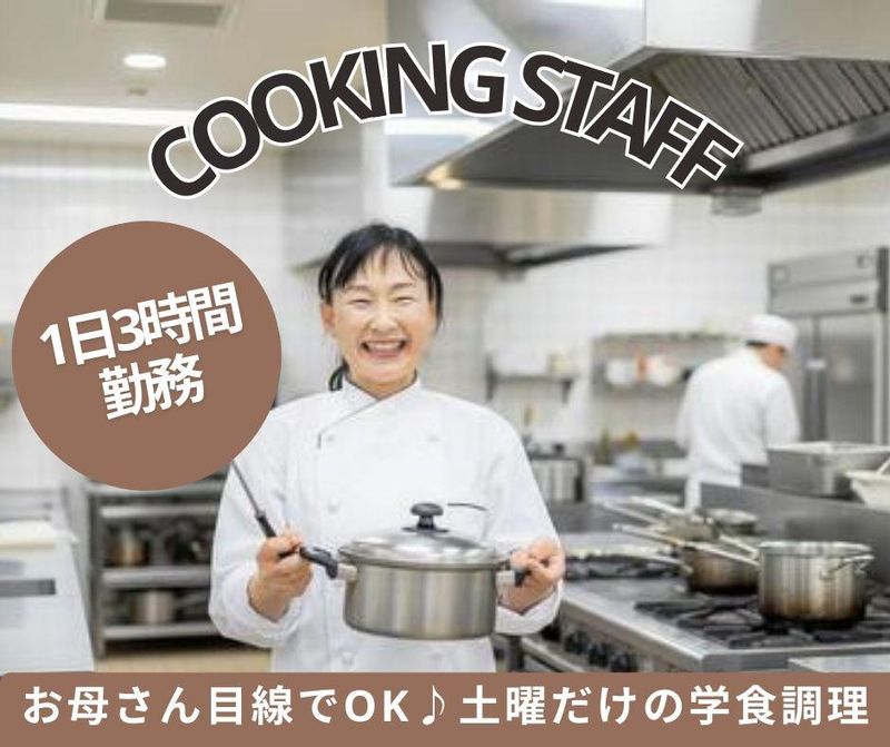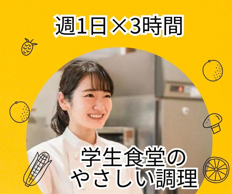 求めている人材 【こんな方を歓迎しています!】 ・調理の経験をお持ちの方 ・普段、家庭で調理をされている方 ・これまでに飲食店での調理経験をお持ちの方 ・自分の調理の技術で学生さんたちのお腹を満たしてあげたい方 ・夕方まで働きたくない方やWワークで勤務したい方 ・学歴やなどは不要です! 【こんな方が活躍中!】 40代、50代の主婦さんや子育てが落ち着いた女性スタッフさんが中心に活躍中! 週1日(土曜のみ)のシフトなので体にも余裕を持って、働いている女性が多数いらっしゃいます! 【優遇】 ・経験者の方優遇します。