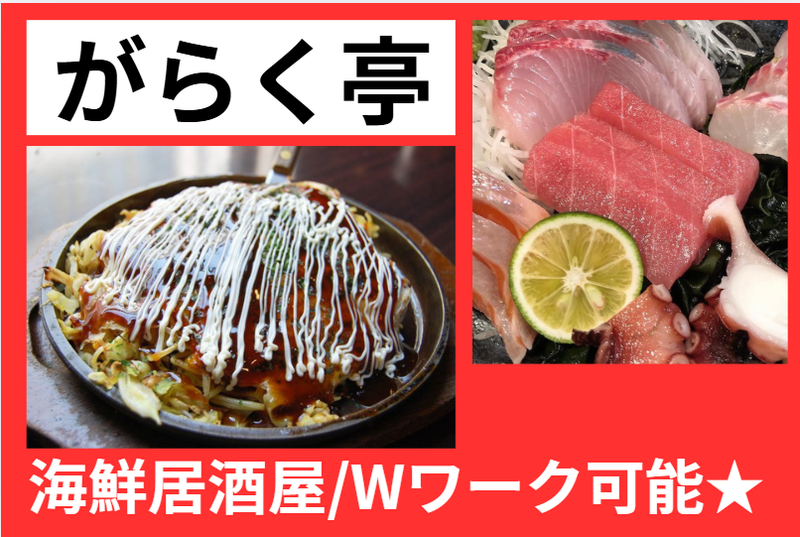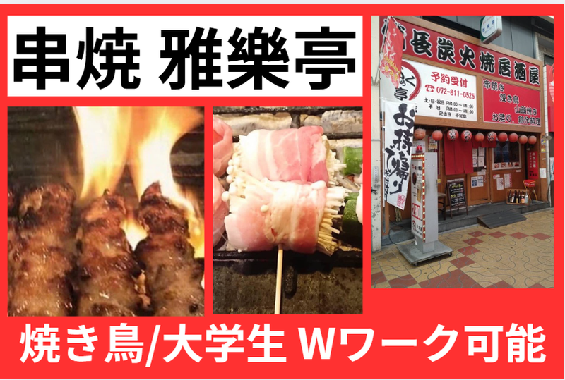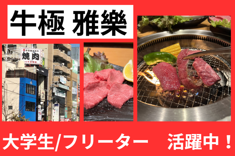 仕事内容 居酒屋のホール&キッチンスタッフ大募集 < 徒歩2分以内の3店舗でのオシゴト > ヽヽ 大学生・フリーターさん歓迎 ☆。・// 同世代とワイワイ楽しく働こう(☆'v')★'v') バイトも思い出のひとつになりますよ…♪ 学校生活と両立が出来る働き方を応援!! 土日祝・夜(18:00~23:00)は入れる方 大歓迎です!! 【シフト】週3~5日 希望相談OKです♪ └2週間毎提出で予定が立てやすく、 学校との両立もバッチリ◎ 【 style 】髪型・ネイル自由、ピアスOK! └制服貸与、 オシャレを楽しみながら働けます! 【待 遇】"まかない無料"でご用意アリ └お店の人気メニューが食べられます! メニューが豊富にあるので 毎日でも飽きないですよ★彡 ■■■■■■■■■■■■■■■■■■■ 以下の3店舗でのシフト制勤務! お客様との会話を楽しみながら、 笑顔で接客をお願いします!キッチンは、 簡単な調理補助からスタートできるので ご安心ください(*^-^*) -【店舗】- ■居酒屋「がらく亭」 大阪府寝屋川市東大利町2-11 プチポートビル1F ■焼肉 牛極「雅樂」 大阪府寝屋川市東大利町2-11 プチポートビル2F ■焼き鳥 串焼き「雅樂亭 早子店」 大阪府寝屋川市早子町19-5 各店舗、徒歩2分以内! 3店舗とも近場なので 通勤時間に変わりはありません◎ -【具体的には】- ■ご注文お伺い(オーダー) ■料理・ドリンクの配膳 …などから覚えて、 ホール業務に慣れたら ■ドリンク作り ■会計・レジ対応 ■調理補助(盛り付け、他) …など、徐々にできる仕事を 増やしていきましょう♪ ■■■■■■■■■■■■■■■■■■■ ____________ │ │ │ 正社員登用制度あり! │ │ │  ̄V ̄ ̄ ̄ ̄ ̄ ̄ ̄ ̄ ̄ ̄ 「将来的には正社員として働きたい」 そんな方には、正社員ヘステップUP できる道もご用意しています\(^o^)/ _____________ │ │ │ 独立だって応援します! │ │ │  ̄V ̄ ̄ ̄ ̄ ̄ ̄ ̄ ̄ ̄ ̄ ̄ 「将来的には独立を目指している!」 そんな方は当社で経営のノウハウなど 当店で勉強しながら働けますよ!!! ”飲食業界に携わりたい方” ”楽しい環境で働きたい方” 大歓迎! ■■■■■■■■■■■■■■■■■■■