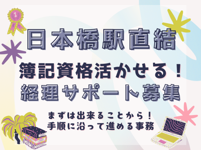 未経験OK♪電話少なめ&入力多めのコツコツ業務!簿記資格活かせる◎経理アシスタント事務/日本橋駅直結