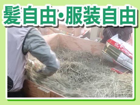 仕事内容 年齢不問で幅広く大募集! ★カンタンな作業なので未経験の方もOK! ★10代~60代の幅広い年齢の方が在籍中の職場! ★髪型自由で自分らしくスタート <この求人のポイント> ◆髪型自由・髪色自由 ◆服装自由 ◆車通勤OK ◆年齢不問 ◆平日のみ(土日勤務なし) <シフト相談もOK> ◆週2日~自分の都合にあわせてシフトOK! ◆1日4時間~勤務OK! ◆扶養内勤務OK! ◆WワークOK! ◆ご家庭の都合優先シフトでOK! ◆勤務時間・曜日など応相談! ◆短時間でも効率良く稼げる! ◆もちろんフルタイム希望も大歓迎! <お仕事内容> 倉庫内でのうさぎ用牧草の選別(仕分け・梱包)などがメインの業務です。 乾燥牧草から雑草や異物を取り除き、指定の重量ごとに袋詰めするお仕事です。 力作業ではなく、簡単にできる倉庫内作業! ※イネ科の牧草を取り扱うお仕事です。 作業はとても簡単なので、 未経験者でもすぐに覚えられます! <幅広い年齢層が在籍> 当社倉庫では主婦(夫)・フリーター・学生まで、 男女・10代~60代の幅広い年齢層のスタッフが在籍しています。 ブランクのある方も働き易い環境です。