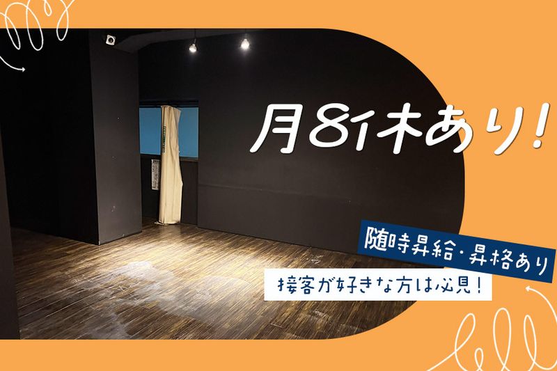 勤務時間・曜日: 18:00~3:00 実働8時間/休憩あり 定休日:月曜日 ・シフト制 ・月8日休み