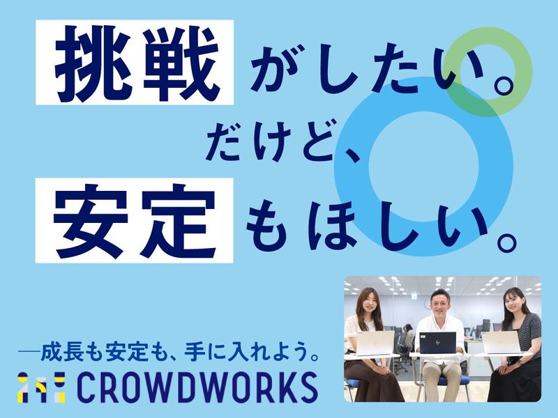 仕事内容 <POINT> ✅法務のプロフェッショナルを目指せる環境 ✅全社平均年齢32.3歳!若手社員が活躍中! ✅フルフレックス×リモート可 ✅月残業10時間程度 ✅麻布台ヒルズの新オフィスに移転 ━━━━━━━━━━━━━━━━ ワークライフバランスも 安定も叶える理想の働き方を! ━━━━━━━━━━━━━━━━ 2011年、「個のためのインフラになる」というミッションを掲げ設立した当社。日本最大級のクラウドソーシングサービス『クラウドワークス』を中心に事業展開し、2014年には東証マザーズ(現グロース)市場へ上場を果たしました。 働き方の多様化とともに弊社のサービスは成長を続け、300名を超える規模に拡大。安定した基盤を持ちながら、成長を遂げるマーケットに携われます! 「経験を活かして、働き方をチェンジしたい!」「若手の活気のある職場で働いてみたい!」…そんな想いの叶う環境をご用意してお待ちしています。 「意志を持って取り組む」「自らの仕事に誇りを持ち、さらに高める」というカルチャーマインドを大事にしているため、意見が活発に飛び交い、挑戦する人を応援する風土です。 ================ | 仕事内容 | ================ 当社を根幹から支える法務担当者の増員募集。 メインで担当いただくのは、契約書作成・審査部分となりますので 経験が浅くてもご活躍いただけます。 <具体的には…> ■事業会社における法務関連業務全般を担当します。 ・契約書作成/審査 └雛型修正や業務提携などに関わる契約関連業務 ・社内法務相談対応 └各事業部からの問い合わせ ・利用規約の作成/改訂 ・押印対応業務 ◎あなたの現在の担当領域に応じて、新たな業務へのチャレンジを後押しします! ◎円滑なコミュニケーション・効率的な働き方を目指しています。 <働く環境について…> 女性社員2名/アルバイト1名 20代・30代の若手が活躍中です! =============== | ココがPOINT! | =============== 【1】何でも聞ける仲間がいます それぞれで業務を進めるのではなく、日々、社員同士でコミュニケーションをとってお互いの進捗管理をしています。困ったことがあれば皆で解決するチームワークの良さが自慢のひとつです! 【2】能力を正当に評価します 半期ごとに目標を立て、達成度合いで評価を実施します。昇給チャンスは年2回。あなたの頑張りはきちんと評価し、給与に反映いたします。 【3】フルフレックス制度 フレックスを利用して、15時に上がるなどメリハリをつけて働けます!