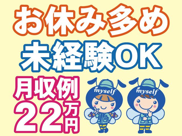 仕事内容 <お仕事のポイント> ・人気の日勤&土日祝休み ・年間休日120日 ・高時給 ・月収22.9万円以上可 ・未経験OK!簡単な監視業務 ・ファン付きベスト貸与あり ・残業ほぼなし <お仕事の内容について> セパレータと呼ばれる電池に使われる フィルムの試作品を製造しています。 ・フィルムが破けていないかチェック検査(基本立ち作業) ・その他、依頼を受けた材料で試作品を作る ・データ分析する 製造過程で熱を発するので 作業現場は少し暑くなりますが、 ファン付きベストが支給されるので快適! 随時自分のタイミングで水分補給も可能。 <働き方について> 月に数回、飯豊町へ応援勤務の場合があります。 (西置賜郡飯豊町萩生1725-1) 基本は日勤勤務で、早番・遅番となるのは月数回です。 <週払い・仮払い制度あり> お給料日前でも安心! お気軽にご相談ください。 <このような方にもおすすめ> ・動きがある作業をお探しの方 ・日勤&土日祝休みのお仕事をお探しの方 こちらのお仕事に興味のある方、 派遣のお仕事をお探しの方は お気軽にお問い合わせ下さい。 あなたのご応募お待ちしております。