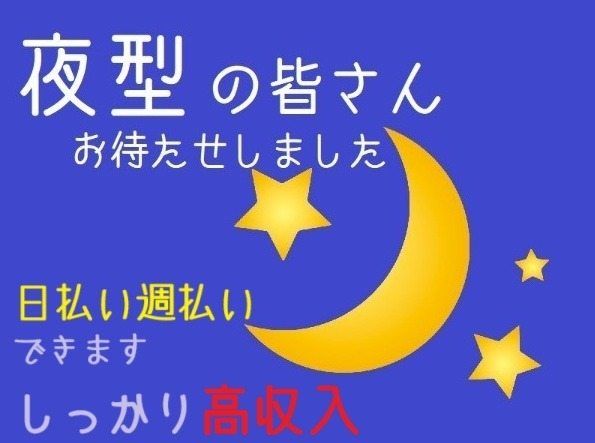 夜勤で稼げるお仕事が登場!土日祝休み&コツコツ&モクモク軽作業!研修もあるので未経験スタートにもオススメ!
