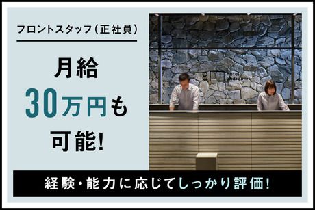 月給200,000円~300,000円 給与 月給 20万円~30万円 (一律手当を含む) ※上記基準額をベースに、経験・能力・前職給与などを考慮の上、当社規定により決定致します ※ホテル業経験者・サービス業経験者(料飲サービスなど)の経験も考慮します。 交通費:交通費支給