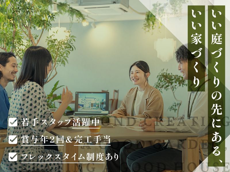 仕事内容 +・・・・・・・・・・・・・・・・・・・・・・・・・・・・+ \経験者歓迎/ フレックス制で通勤ストレス軽減! デザインの才能を存分に活かせる! +・・・・・・・・・・・・・・・・・・・・・・・・・・・・+ …求人のPOINT………………………… ✅️賞与年2回あり&完工手当も ✅️フレックスタイム制度! ✅️若手が活躍できる企業 ✅️経験を活かせる環境 …………………………………………… ~~~~【仕事内容】~~~~ あなたには、お庭のデザイン業務全般を おまかせします! <具体的には…> ・新築住宅の家の外回り ・ガーデンプランの提案・設計 ・お客さまとの打ち合わせ ・図面作成 ・営業や設計補助 ・現場での作業 ~~~~~~~~~~~~~~ ✨エクステリアプランナーとは? ・・・・・・・・・・・・・・・・・・・・・・・・・・・・・・・ 家の外回り、庭や門などのデザインや 計画を立てる専門家のこと! 住む人にとって使いやすく、 安全で美しい外構を実現するお仕事です!
