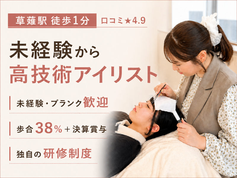 未経験から高技術アイリストに【草薙駅徒歩1分/半年で月給30万円可能/完全週休2日/同時施術ナシ】