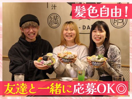 待遇・福利厚生 【福利厚生】 ・昇給有 ・社会保険完備 ・社員登用有 ・1日8時間・週40時間以上・22時以降時給25%アップ ・時給は嬉しい1分単位支給 ・制服クリーニングはお店負担 ・社割30%オフ(バル・バー等の系列店でも使用可) ・友達紹介手当1万円支給(規定) ・髪色自由 ・ネイルOK(要清潔感) ・ピアスOK(要清潔感) ・髭OK(要清潔感) ・扶養内勤務OK ・稼働分前払制度有(規定有) 勤務1カ月後より、当月勤務分のお給与をお給料日前に支給可能!※要申請 ・無料食事有!(規定) ※5時間以上勤務…1食無料 ※5時間未満勤務…1食250円 ・休憩室完備 毎年「まかないコンテスト」・「D1グランプリ」など様々な大会を開催! アルバイトも皆さんエントリーでき、就職や社会人で役立つ知識を身につけることが可能です◎ 就活の際に「サントリーグループのお店でアルバイトしてました。」って自信を持ってアピールできます☆ ■前払い(日払い)OK! 勤怠登録後、一定期間勤務した分のお給料をお給料日前に支給することができます 規定がありますので詳細は応募、面接の際にお問い合わせください