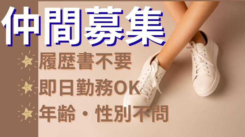 求めている人材 ~一つでも当てはまればOK~ ・パソコン操作に抵抗のない方 ・何かしらの接客・販売経験のある方 ・元気にご挨拶ができる方 ・お客様と明るくコミュニケーションを取ることができる方 ・シューズ販売の経験のある方、歓迎(※必須ではございません)