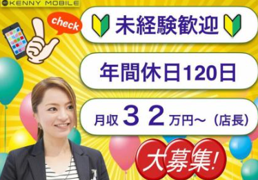 仕事内容 \ この求人のおすすめポイント! / ==================== ✨経験を活かし、幅広い業務に挑戦できる ✨完全週休2日制&年間休日120日! ✨昇給・賞与あり!頑張りをしっかり評価 ✨出張手当は全額支給で安心サポート◎ ✨ネイル・髪型・服装は比較的自由♪ ==================== ▶仕事内容 ━━━━━━━━━━━━━━━━━━━━ 店舗前のイベントブースにて、 来店されたお客様へご案内を行っていただく イベント専任業務です。 まずは集客業務からスタートし、 その後は商品説明や契約手続きなど、 より専門性の高い業務へと 段階的にステップアップしていただけます。 これまでの経験を活かしながら、 幅広い業務をお任せできるポジションです。 具体的な業務内容は・・・  ̄ ̄V ̄ ̄ ̄ ̄ ̄ ̄ ̄ ̄ ̄ ̄ ✅来店されたお客様へ 飲料・ノベルティをお渡しし、 適切な声かけで興味を引き出します。 ✅お客様のニーズや課題を的確に捉え、 適切な提案につながる情報を ヒアリングします。 ✅店舗スタッフとの連携を通じて 成約をサポートし、 業務全体の効率化に貢献します。 ✅スキルに応じて、 プラン説明から登録手続きまで 一連の対応を担当し、 即戦力として活躍していただけます。 ※配属店舗は、ご希望や適性を考慮し 面接後に決定します。 ▶ここで働く魅力ポイントをご紹介! ━━━━━━━━━━━━━━━━━━━━ ⭐安定して働ける環境 ・・・・・・・・・・・・・・・・・・・・・・ イベントは土日だけでなく平日もあるため、 年間を通して安定した仕事量があります。 単発のイベントスタッフとは異なり、 継続的に勤務できる為収入面でも安心です。 ⭐活躍の場がどんどん広がる ・・・・・・・・・・・・・・・・・・・・・・・・・・・・ 関東圏の店舗に加え、長野・静岡といった 地方店舗での勤務チャンスもあります。 出張手当は全額支給のため、 様々な地域で経験を積めることが魅力です。 ⭐専門知識がなくても始められる ・・・・・・・・・・・・・・・・・・・・・・・・・・・・・・・・ 担当するのはイベント専任の業務なので、 最初から難しい商品知識は不要です。 基礎から学びながらスキルを伸ばせる 育成環境が整っています。 ▶株式会社ケニーモバイルについて ━━━━━━━━━━━━━━━━━━━━ 当社は関東エリアを中心に、 長野・静岡など周辺地域へも 事業を拡大している通信業界の企業です。 現在は、20店舗体制を目指して 着実に事業拡大を推進しております。 また、チームワークを重視し、 スタッフ一人ひとりが安心して働きやすい 職場環境づくりにも力を入れています。 通信業界での経験を活かし、 新しいフィールドで活躍したい方に 最適なお仕事です。 関東圏のさまざまな店舗で働けるため、 活躍のチャンスが広がります。 また、出張の機会もあり、 多彩な地域で経験を積めるのも魅力です。 まずはお気軽にご応募ください♪ 皆様とお会いできることを 心よりお待ちしております!