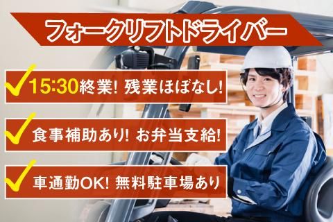仕事内容 \経験者歓迎!資格を活かせる職場✨/ フォークリフト作業をお任せします! 「フォークリフト免許を活かしたい」 「未経験からでも安定した収入を得たい」 「15時半終業で早く帰宅したい」 「プライベートの時間を大切にしたい」 そんな方にピッタリの職場・お仕事です! <仕事内容> フォークリフトに乗り倉庫での入出庫作業や、 ピッキング、梱包、在庫管理等をしていただきます。 ※カウンターフォークリフトをメインで使用 【一日の流れ(例)】 ・7:00~/出勤・始業 ・9:30~/小休憩(15分) ・11:50~/お昼休憩(お弁当支給) ・12:50~/作業再開 ・~15:30/終業・退勤 ※定時退社推奨で残業はほぼございません。 ✅製品の積み替えは一部ありますが、 手で運ぶことはほとんどありません。 \\ここがポイント//  ̄ ̄ ̄ ̄ ̄ ̄ ̄ ̄ ̄ ̄ ̄ ✨業務の操作工程が少ない! ✨手作業は、積み替え程度!(ほぼリフト使用) ✨月給UP実績あり!(経験や業務内容による) ✨残業ほぼなし!(定時退社推奨) ✨食事補助がございます!(お弁当支給) ✨マイカー通勤OK!(無料駐車場あり) ✅当社はサポート体制が充実!  ̄ ̄ ̄ ̄ ̄ ̄ ̄ ̄ ̄ ̄ ̄ ̄ ̄ ̄ ̄ ̄ ̄ 入社後は、先輩社員が丁寧にご指導いたします。 未経験の方でも安心して業務に取り組める環境を 整えておりますので、工場内作業が未経験の方や ブランクのある方でも安心してスタートできます! ✅あなたの新たな一歩を全力サポート!  ̄ ̄ ̄ ̄ ̄ ̄ ̄ ̄ ̄ ̄ ̄ ̄ ̄ ̄ ̄ ̄ ̄ ̄ ̄ ̄ セカンドキャリアとして新しい一歩を 踏み出したい方も大歓迎です! 「まだまだ働きたい」 「せっかく取得した資格を活かしたい」 「新しい環境で再スタートしたい」 そんな、あなたの”これから”を全力で応援します。