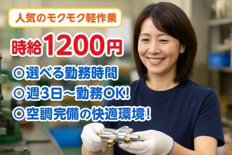 仕事内容 小型機器の組立・検査スタッフ コツコツ集中するのが得意な方にピッタリ◎ 軽い部品を組み立てて機械にセットしたり、完成品をチェックするだけ! 未経験からスタートしたスタッフが多数活躍中♪ 丁寧な研修とマニュアルがあるので、安心して始められます! 【お仕事内容】 ・小型機器の部品を手順通りに組立て ・機械に部品をセットして操作 ・出来上がった製品の検査・仕上げ作業 【ここがポイント】 ◎未経験歓迎&マニュアル完備 └初めての方でも安心してスタートできる環境です。先輩スタッフも未経験からのスタートが多数! ◎人気のモクモク作業 └集中して取り組める組立・検査のお仕事。人と話すのが少ない作業が好きな方に最適! ◎選べる勤務時間 └8:30開始で最短15:50まで。時間帯が複数あるのでライフスタイルに合わせて働けます。9:00~の相談もOK。 ◎週3日~勤務OK! └家庭やプライベートとの両立がしやすく、柔軟に働けるシフト体制です。 ◎空調完備の快適職場 └暑い日も寒い日も関係なし!快適な環境で作業に集中できます。 ◎女性・主婦層が活躍中! └職場には同じような境遇の仲間がいて安心。和やかな雰囲気です。