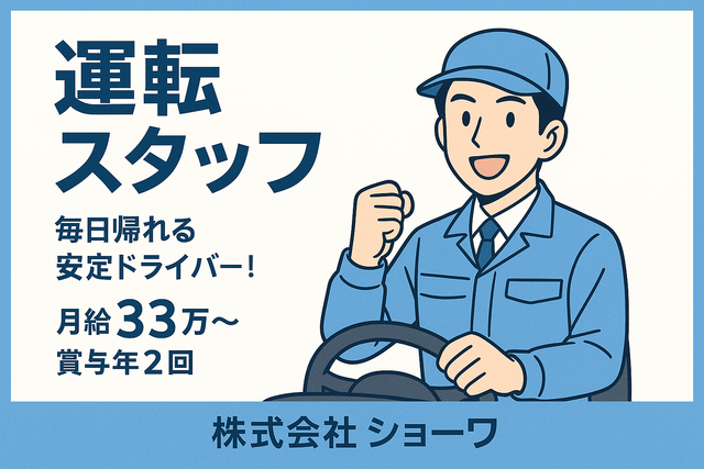 仕事内容 \おすすめポイント!/ ・地場配送メイン!日中の勤務なので、夕方には帰宅できます ・女性ドライバーも活躍中!性別問わず安心して働ける環境 ・ヘルメット・安全帯・安全靴は全て会社支給!初期費用ゼロでスタートOK <仕事内容> 工場で製造された生コンクリートを、大型ミキサー車に積み込み、建設現場へお届けするお仕事です。 運転中心でシンプルな業務内容なので、未経験から始めた先輩も多数! <1日の流れ> ・工場で生コンを積み込み ・片道50分圏内の現場へ配送(1日3〜4回程度) ・最後に車両を洗車して終了 \働きやすさの理由/ ◆体への負担が少ない◆ 荷下ろしは機械で自動対応。重い荷物を持つ作業はほとんどありません。 ◆毎日家に帰れる◆ 長距離運転はナシ!夕方には自宅で過ごせるので、家族との時間も確保できます。 ◆キャリアアップも可能◆ 「もっと走りたい!」という方は、中距離・長距離の回送業務へステップアップも可能! ◆先輩の声◆ 「子どもと夕飯を一緒に食べられるのが何より嬉しい」 「安定した給与と手当があるから、安心して続けられます」 \こんな方にピッタリ!/ ★毎日家に帰りたい方 ★安定収入を得たい方 ★運転の仕事に挑戦したい方 ══════════════════════ Indeedで求人を保存ブックマーク いつでも見返せるようになります! ══════════════════════ 【休日・休暇】 隔週休二日制(日曜、祝日休み) 土曜出勤はご相談OK!しっかり稼ぎたい方は週1ペースで入っている方も♪ ・有給休暇 ★有給の取得に理解ある職場なので、遠慮なく相談OK! ・夏季休暇(5日〜7日) ・年末年始休暇(5〜7日) ※他、年間カレンダーによる 【福利厚生・待遇】 賞与:年2回(7月・12月) ※25〜70万円(前年度実績) ・退職金制度あり(入社2年以降) ・交通費支給(規定あり) ・マイカー通勤OK(無料駐車場あり) ・バイク・自転車OK ・資格取得支援あり ・資格手当あり(運行管理者 毎月+10,000円) ・樽町車庫勤務手当(毎日+1,000円) ・各種社会保険完備 ・昼食補助 ※荷主様より支給 ・定年再雇用制度 ★再雇用後も給与ダウンなし! ・制服支給 ・ヘルメット・安全帯・安全靴支給 【\未経験でも安心!うれしいサポート充実/】 ◆必要な備品はすべて会社負担◆ 制服・ヘルメット・安全靴など、業務に欠かせない道具は全て支給。 入社時の出費ゼロで安心して働き始められます。 ◆ランチ補助つき◆ 勤務日は毎日お弁当+お味噌汁を支給! 食費の節約にもつながり、好評の福利厚生です。 ◆普通免許があればOK◆ 中型・大型免許は入社後に会社が取得費用をサポート。 ドライバー未経験の方でも安心して挑戦できます!