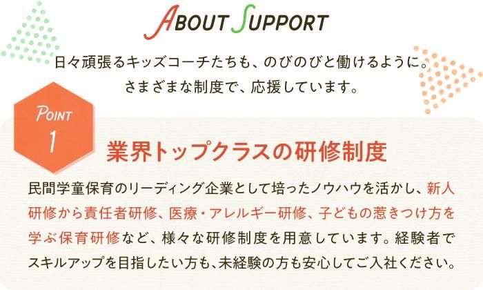 仕事内容 ✨この求人のアピールポイント  ̄ ̄ ̄ ̄ ̄ ̄ ̄ ̄ ̄ ̄ ̄ ̄ ̄ ̄ ̄ ̄ ̄ ̄ ̄ ̄ ✔ 未経験OK・20代~40代を中心に活躍中◎ ✔ 年間休日120日+各休暇制度&充実の福利厚生 東急グループならではの安心感と働きやすさ◎ ✔ 子育て支援制度&育休取得率も100%! 子育てとの両立を会社がサポート! ✔ 研修制度が充実!未経験から活躍できる◎ 自分らしいキャリアを描いて働く! ✔ 5年連続「働きがいのある会社」 ベストカンパニー選出! 東急グループの一員として、子育て支援事業を展開する当社。 学校でも家庭でもない「子どものサードプレイス」をコンセプトに、学童保育・児童館を74施設、保育園5園を運営しています。 今後の事業拡大に向け、キッズコーチ(学童保育・児童館指導員)を増員募集! わたしたちと一緒に、子どもの成長をサポートしていきませんか。 ※2026年4月入社まで可 ✨仕事内容  ̄ ̄ ̄ ̄ ̄ ̄ ̄ ̄ ̄ ̄ ̄ ̄ ̄ ̄ ̄ ̄ ̄ ̄ ̄ ̄ 学童保育・児童館でキッズコーチとして、一人ひとりの個性や可能性を引き出す「コーチング」で子どもたちの成長をサポート。 放課後と長期休みを価値ある時間にするために、日常プログラムはもちろん、学校や家庭では経験できないイベントプログラムを通して子どもたちの「社会につながる人間力」を育んでいます。 また、学校での出来事を聞いたり、一緒にイベントを楽しんだり、時には保護者や先生にも言えないような相談にのることも。 キッズコーチは子どもの心の拠り所となる存在です。 >>具体的には ・生活全般の保育業務 ・イベントプログラムの企画や運営 ・保護者とのコミュニケーション ・上記に関連する事務業務 現在、募集している「公設民営型(学童保育・児童館)」の施設は、教員の方と子どもたちの情報交換をしたり、地域の方を招いたイベントを企画するなど、学校や地域との連携もやりがいの一つです。 ✨1日の流れ(学童保育の例)  ̄ ̄ ̄ ̄ ̄ ̄ ̄ ̄ ̄ ̄ ̄ ̄ ̄ ̄ ̄ ̄ ̄ ̄ ̄ ̄ 10:00 出社・子どもたちを迎える準備 12:00 ミーティング 14:30 子どもたちを出迎え 16:30 外遊び、おやつの提供 18:00 子どもたちのお見送り 18:30 翌日の準備 19:00 退社 ✨充実した研修制度  ̄ ̄ ̄ ̄ ̄ ̄ ̄ ̄ ̄ ̄ ̄ ̄ ̄ ̄ ̄ ̄ ̄ ̄ ̄ ̄ 民間学童保育のリーディング企業として培ったノウハウを活かし、「子どものほめ方」「コーチング」など具体的な保育研修から、医療・アレルギーやビジネスマナーなど専門知識を学ぶものまで多彩な研修プログラムを用意しています。 大学で教員免許を取得したけれど、この業界は未経験という方も、経験者でスキルアップを目指したい方も安心して入社いただけます。 研修の一例 ◎新人研修(保育基礎/リスクマネジメント/コーチング/学童保育基礎知識) ◎階層別研修(リーダー候補/責任者/エリアマネージャー/2,3年目研修) ◎保育研修(コーチング/ひきつけ方/ほめ方/けんかの仲裁) ◎専門分野研修(医療/アレルギー/上級救命) ✨資格取得支援&充実の福利厚生  ̄ ̄ ̄ ̄ ̄ ̄ ̄ ̄ ̄ ̄ ̄ ̄ ̄ ̄ ̄ ̄ ̄ ̄ ̄ ̄ ✔ 資格取得サポート(保育士や放課後児童支援員など) ✔ 医療費補助(通院時3,000円以上に対し支給) ✔ 東急グループ施設割引(宿泊施設等の利用補助) ✔ 各種お祝い金:結婚や出産、入学祝い金等 ✔ 東急グループ保険加入 ✔ 引越支援一時金(10万円) ✔ 住宅支援制度:独身寮(規定あり) ✔ 子育て支援制度 ・産前産後休暇 ・育児休業(現在、育休取得率100%) ・お子さんが小学校3年生までの時短勤務 ・KBCほいくえん/キッズベースキャンプ優先利用&割引 ・家族看護休暇 ✔ Wワーク制度(スキルアップサポート) ✔ 退職金制度 ✨勤務地について  ̄ ̄ ̄ ̄ ̄ ̄ ̄ ̄ ̄ ̄ ̄ ̄ ̄ ̄ ̄ ̄ ̄ ̄ ̄ ̄ 以下の大田区内やその他23区内に多数あり ✔ 相生放課後ひろば(蒲田駅) ✔ 山王児童館(大森駅) ✔ 馬込放課後ひろば(馬込駅 ✔ 入新井第五放課後ひろば(平和島駅) ✔ 中高生ひろば羽田(大鳥居駅) その他、目黒区(目黒/中目黒/祐天寺/都立大学など)や新宿区(新宿/高田馬場/早稲田など)、練馬区(上石神井/石神井公園など)で募集中♪ 面接時、お住まいの最寄り駅と最新の募集状況をもとに入社時の勤務場所を確認させていただきます。 ✨社員インタビュー  ̄ ̄ ̄ ̄ ̄ ̄ ̄ ̄ ̄ ̄ ̄ ̄ ̄ ̄ ̄ ̄ ̄ ̄ ̄ ̄ Aさん(28歳・入社3年目) 「未経験からのスタートでしたが、先輩たちのサポートのおかげで安心して仕事を始めることができました。 子どもたちとのふれあいを通じて、自分自身も成長していると感じています。毎日が新しい発見の連続で、とてもやりがいを感じています。」 Bさん(31歳・入社5年目) 「元々は銀行員でしたが、子どもたちと関わる仕事がしたいと思い、転職を決意しました。 今では、転職して良かったと感じています。キッズベースキャンプでは、子どもたちの成長をサポートすることで、自分自身も豊かな経験を積むことができます。」