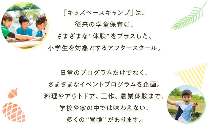 選考プロセス 【採用フローについて】 ①応募・書類選考 ②一次・二次面接(一次面接はオンライン/二次面接は会場開催) ③内定 ※一次選考については、1クリックで予約が可能なフォームをメール送付 ※ご応募から内定まで約2週間~1ヶ月程度を予定 【会社情報】 会社名:株式会社東急キッズベースキャンプ 本社:神奈川県川崎市中原区小杉町1-403武蔵小杉タワープレイス18階 【問い合わせ先】 株式会社東急キッズベースキャンプ・採用担当 MAIL:recruit@kidsbasecamp.com