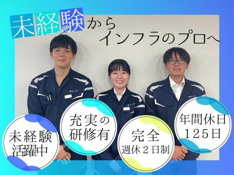 仕事内容 未経験の20代・30代が活躍中!株式会社ユーズの土木設計業務とは? 活躍中の社員の声をお届けします! \社員インタビュー/ 未経験で入社し、現在は主に 道路設計業務を担当しています。 転職活動をしていてユーズを選んだ理由は、 絶対になくならない安定した業界だから。 将来のことも考えて長く働き続けられる会社を 探していた私にはピッタリでした! 未経験だったのでもちろん不安はありましたが 先輩がイチから指導してくださったので 現在ではチームの一員として業務を行い、 実際に出来上がった道路を見て達成感でいっぱいでした。 入社3年目 道路設計技術者 - 大学で土木設計に近しいことを学んでいました! 基本的に中にいる仕事で外に出るのは 月2、3回程度なので無理なく働けています! はじめは教わったことをこなしてもらうのが基本になりますが、 業務に慣れてきたら、自分のペースで仕事の組み立てを することが可能です。 言われたことを淡々とする、やらされている感の ある仕事ではないので、 指示待ちで決まったことをコツコツすることを 好まれている方よりも 自分で業務を設計して算段をとれる方に向いている お仕事だと思います! 入社15年目 第二新卒入社 \こんなことをお任せします/ 【仕事内容】 道路・河川・上下水道などの設計業務をお任せします。 【具体的には】 主に京都府下の官公庁から、道路、河川、上下水道といった 私たちの生活基盤である社会インフラについて新しく計画することや、 補修・修繕などに必要な設計業務を委託されています。 近年、自然災害や施設の老朽化によって 社会インフラの更新需要が高まっているので、 地域貢献できる非常にやりがいのある仕事です。 (仕事の流れ) ・官公庁(発注者)から設計業務を受注 ・発注者との打合せ協議にて設計概要のすり合わせ ・現地踏査にて現場確認 ・社内での設計作業、及び発注者との打合せ ・成果品の納品 設計業務の未経験者の方でも丁寧に指導し、 設計技術者になっていただけるように社内体制を整えています。 \私生活も大切に/ ★年間休日125日 ★完全週休2日制(土日祝) ★月残業平均時間11時間以下 \株式会社ユーズはこんな会社です/ 『京都で生活インフラを支え続けて半世紀 信頼を第一に人材育成にも力を入れています』 大阪ガスの測量・調査・設計部門を担い、また 上下水道・道路・河川など 官公庁の公共事業におけるインフラ整備にも携わり、 長年にわたって地域社会に貢献してきた私たち。 「プロとしての自覚に徹し、品質で顧客満足と信頼を獲得する」 をモットーに、1件1件丁寧に仕事に取り組み、 2015年度には国土交通省近畿地方整備局より 「局長表彰」と「事務所長表彰」をダブルで受賞。 今後も品質を大切にしていきながら 地域社会と顧客利益に貢献していきたいと考えています。 多様化する社会のニーズと技術革新に応えるべく、 人材の育成にも力を入れているため、未経験の方もぜひ。 イチから技術を学ぶなら、安心できる環境を選んでください。