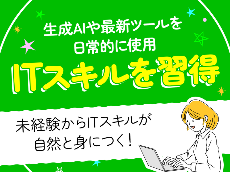 求めている人材 ・高校卒業以上(またはこれと同等以上の能力・技能を有する者) ・PC操作(ローマ字入力程度)が可能な方 【こんな方大歓迎♪】 ■好奇心旺盛な方:生成AIなど最新のツールに興味がある方は要チェック! ■コミュニケーションが好きな方:文章でのやり取りが得意な方にオススメ♪ ■協調性のある方:チームワークで目標達成を目指せる仲間を募集中! ■課題解決が好きな方:他人の悩みに関心を持って、当事者意識で行動できる方にピッタリ♪