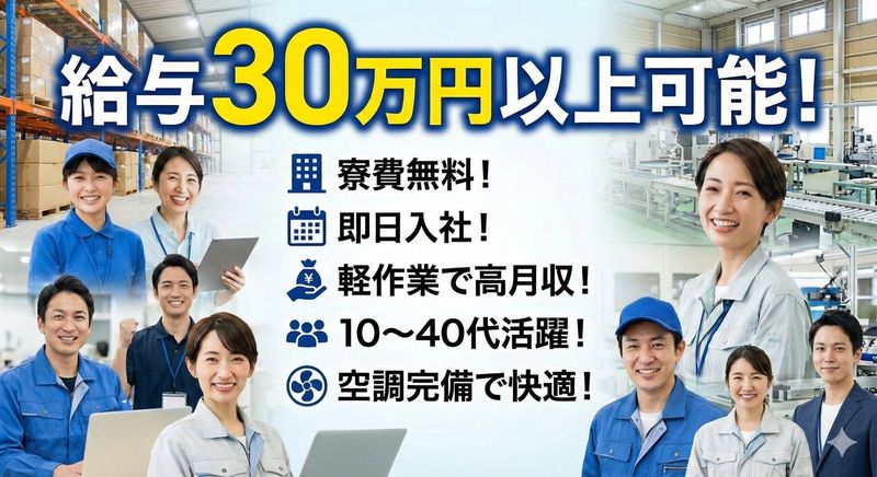 仕事も家も即決!!即入社OK・寮完備・日払い対応!