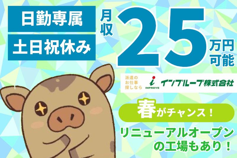 仕事内容 ✨時給1450円〜!月収25万円以上可能 ━━━━━━━━━━━━━━━━━━ ✨重たい物は一切なし!腰への負担なし ━━━━━━━━━━━━━━━━━━ ✨未経験も安心!20~40代男性活躍中 ━━━━━━━━━━━━━━━━━━ ✨スグに覚えられる単純作業 ━━━━━━━━━━━━━━━━━━ 4月にリニューアルを控えた 勢いのある成長企業で、 腰を据えて安定して稼ぎませんか? 職場は空調が完備されているだけでなく、 「とても静か」で「とても綺麗」な 驚くほど清潔感あふれる環境です。 …………………………………………… 機械にセットするだけの軽作業 …………………………………………… 【お仕事内容】 充電器のケーブル製造・検査 スマホ等の充電に 欠かせないケーブルを扱います 。 ケーブルを機械にセットして、 ボタンをポチッ! あとは機械が自動で巻いてくれるので 仕上がりを検査して梱包するだけ✨ ╭━━━━━━━━━━━━━━━━━╮ 嬉しいポイントが盛りだくさん! ╰━━━━━━━━v━━━━━━━━╯ 4月にリニューアルする工場もあり、 清潔感抜群! 静かでキレイな職場ですよ さらに、400円で購入できるお弁当もあり 温かいランチが安く食べられて、 食費も節約にも繋がります✨ 【20代〜40代の男性が中心に活躍中!】 ✅空調完備で年中ずっと快適な環境 ✅土日祝休み!長期休暇もしっかり有り◎ ✅車やバイク通勤OK!(無料駐車場完備) ✅知識や経験は一切不問!人柄重視の採用 「コツコツ自分のペースで働きたい」 「綺麗な職場で、長く続けたい」 そんな方にぴったりの環境を整えています まずはお気軽に、ご応募くださいね✨