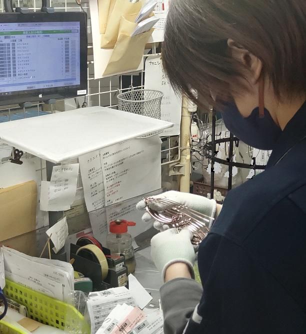 仕事内容 ーアピールポイントー ✨賞与は計5か月分! パートで週5日働くよりも しっかり稼げると女性スタッフ活躍中! ✨残業少なめ! ご家庭との両立もしやすい♪ ✨業界未経験大歓迎! 初めての製造業でもご安心ください! 先輩スタッフが丁寧に教えます♪ ー ■加工前のラッキング作業や段取作業 ■加工後の外観検査作業(目視検査) ✅:具体的な手順  ̄ ̄ ̄ ̄ ̄ ̄ ̄ ̄ ̄ ①ラッキング作業 眼鏡フレームにメッキや塗装をするため、 ラックに枠や腕を固定する作業です。 ②伝票を部品に取り付ける作業 ラッキング作業後、加工内容や納期の伝票を 部品に取り付ける軽作業です。 ③メッキ・塗装後の検査作業 目視で不良がないかをチェックします。 ・メッキが均等か ・ゴミがついていないか ・部品に傷がないか ―――――――――――――――――― ■メッキする目的 色をつけるだけでなく、さびや腐食を 防ぐために加工しています。 メタルワークで金属製の眼鏡を作ります。 ※ドライバー・はさみ・カッターなどの 道具を使うこともあります。 ■生産管理システムへの入力作業 タブレットのタッチパネルで入力します。 経験は不要です! -*- - -*- - -*- - -*- - -*- - -*- -* 20名ほどの幅広い年齢層の女性が活躍中! ラッキング作業や検査作業に従事しています。 業務はイチから丁寧に教えます。 どの工程も難しくなく、2ヶ月ほどで 慣れる作業ばかりです! ライン作業ではありません。 作業机の前で立って作業をします。 眼鏡のパーツによっては指先や目を使います。 重量物は扱いません! -*- - -*- - -*- - -*- - -*- - -*- -* この部署の募集は久しぶりです♪ 定着率が高く、産休・育休の復帰率も高い! 人員体制を強化するための採用です。 眼鏡のパーツの名前や扱い方も 1つずつ丁寧に教えますので安心してください♪ 業界未経験や異業種からの転職でもOK! 分からないことがあれば何でも聞いてくださいね!