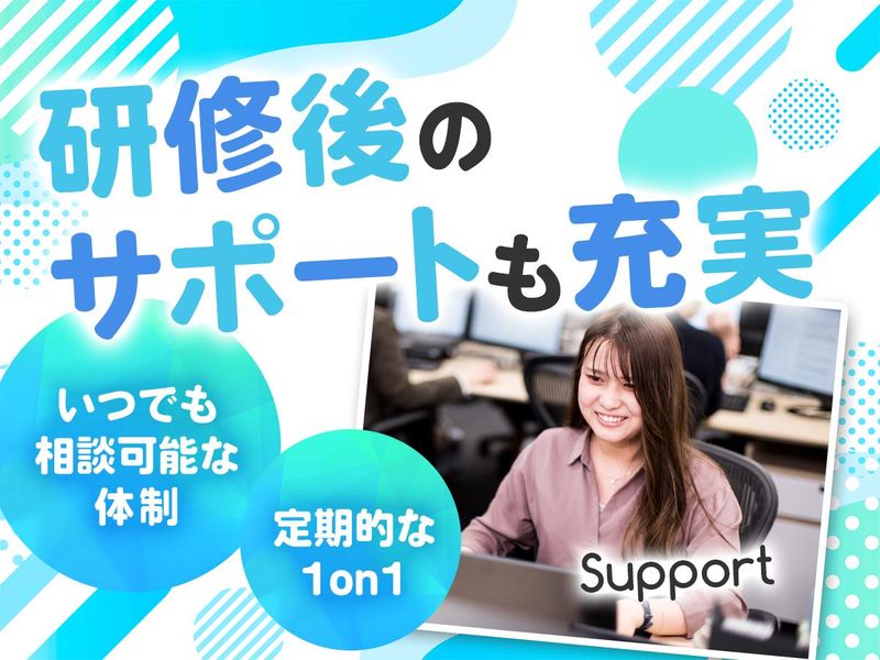 求めている人材 ◆学歴不問・未経験歓迎 ◆何らかの営業経験がある方は大歓迎/業界・年数不問◎ <こんな方を歓迎しています> ◎何らかの営業経験がある方(商材・サービス問わず) ◎WebマーケティングやAIの業界で活躍する意欲をお持ちの方 ◎コミュニケーション力に自信のある方 ◎ベンチャー企業で圧倒的に成長したい方 ◎ブログ・SNSなどWEBコンテンツに関わったご経験のある方 ◎チャレンジ精神を持った方 ◎ECサイト運営の経験がある方 ▼多彩な業界出身者が活躍中! ―――――――――――――――――――― アパレルや不動産、ホテル、フィットネス、コールセンター、観光業など、 さまざまなバックグラウンドがある先輩が集まっています。 「WebやAIの知識ゼロ」でもしっかり活躍できる環境です! ▼学ぶ意欲がある方に嬉しいサポート ―――――――――――――――――――― ■外部研修制度 直近ではフランクリン・コヴィー・ジャパンによる「7つの習慣」研修(2日間)を受講しました。 ■内部研修制度 直近では自社生成AI研修商材「AI Switch」の社内研修(1日終日)を実施しました。 ■資格取得支援制度 指定資格の受講費用を会社が全額負担 ■書籍購入費補助 必要書籍の購入費用を会社が全額負担 ▼「働きやすい環境作り」の取り組み ―――――――――――――――――――― ■外部相談窓口(ハラスメント対策) 外部にハラスメント専門家が対応する相談窓口があります。 ■21時にはオフィス消灯 消灯時間を設けて残業を抑制しています。 ■土日祝日に仕事の連絡が来ない体制 社用携帯はオフィスに置いて帰るルールのため休日の対応義務がありません。 ▼キャリアパスについて ―――――――――――――――――――― 入社後は、プレーヤーとして「SV」ポジションを目指していきます。 「SV」への昇格には明確な定量評価制度があるので、「どうすれば昇格できるのかわからない」ということは一切ありません。 その先はご自身のキャリア指向に合わせてご相談の上決定していきます。 スーパープレーヤーを目指す方、管理職を目指す方、新規事業の責任者を目指す方など、多様なキャリアの選択肢がある環境です。