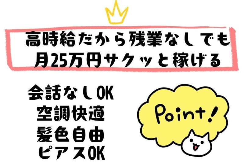 残業無し17時半退勤/高時給で月25万可/座り作業でラクラク続けられる!