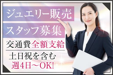 資格 ◆未経験歓迎/経験者優遇 ◆何かしらの販売・接客経験あれば歓迎 ◆長期で働ける方 ◆20代~50代男女スタッフ活躍中 【 下記のような方は歓迎 】 ・ジュエリーアドバイザーの経験がある方 ・アパレルショップや食品、スーパー、雑貨屋などでの勤務経験がある方 ・販売スタッフ、接客販売の経験がある方 ・受付や案内スタッフなどの接客業の経験がある方