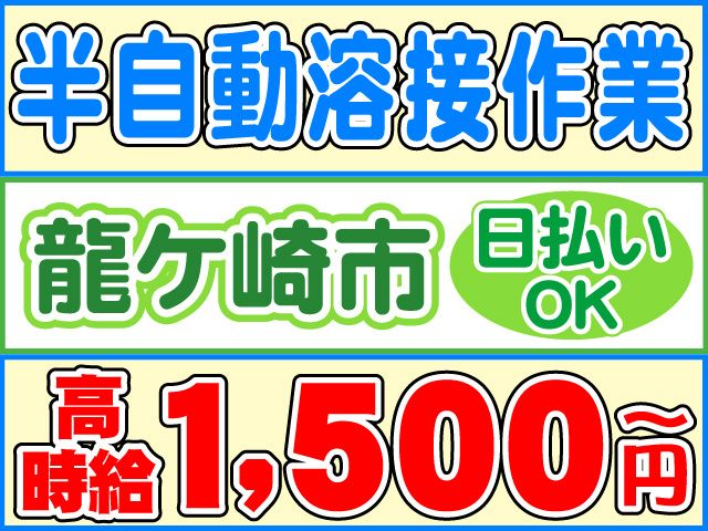 仕事内容 経験を活かして即戦力として活躍できます! 「溶接スタッフのポイント」 〇資格不問・溶接経験活かせる 〇時給1500円スタート 〇4カ月目から時給アップ 〇夜勤割増ありで高収入! 〇土日祝休み・長期休暇あり 〇仕出し弁当あり 〇履歴書不要 〇日払いOK(規定内) 〇交通費支給(規定内) 〇「マイリク定着支援」導入企業 「溶接スタッフの詳細」 大手メーカー向けの建設機械部品を 製造している工場です 経験を活かして、 さらにスキルアップしたい方にピッタリです! ー どんなお仕事?ー 半自動(MAG)溶接を使って、 建設用機械などに使用される 厚板部材の溶接作業をお願いします ただ作業するだけじゃなく、 形が「完成していく手応え」がある現場です 単純繰り返し作業ではなく、 ▶ 技術で勝負したい ▶ 経験者の仕事がしたい ▶ 腕で稼ぎたい そんなタイプの方が活躍しています 事前に職場見学もできて安心 職場見学(30分~1時間程度)を実施しております。 「勤務について」 〇日勤と夜勤の2週間おきの2交替 〇土日祝休みの週休2日制 〇長期連休あり 急な発熱・体調不良・冠婚葬祭など、 突発的なお休みに柔軟に対応しております。 【経験活かせます】 〇部品製造会社勤務経験 〇溶接工派遣社員 〇金属加工パート・アルバイト ブランクある方もOKです! 部品工場、建設機械工場での溶接の 経験を活かして働けます! 電話でのご応募、ご質問も受付中 TEL0800-222-6888(フリーダイヤル) までお気軽にお電話ください。 求人情報はコチラ https://entori.jp/loftytsukuba コーディネーター・定着支援のWサポート体制導入 「マイリク定着支援」導入企業! アンケートで職場の様子を確認し、 コーディネーター・定着支援担当が連携してサポート。 はじめての派遣でも安心して働けるよう迅速かつ 丁寧にサポート対応いたします。