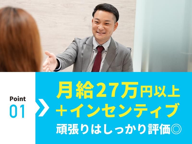 月給271,600円以上 給与詳細 ※基本給・固定残業代の総額 基本給:月給 22万円 〜 固定残業代:あり 1ヶ月あたり5万1600円(固定残業時間:1ヶ月あたり30時間) 固定残業時間を超えた勤務時間については別途残業代を支給する 【一律手当】 全員に一律で支払われる通勤・皆勤・家族手当金額:なし 全員に一律で支払われるその他手当金額:なし ◆普段の頑張りは、 インセンティブとして 給与とは別に随時支給 ◆東京・横浜オフィス勤務の場合、 別途都市手当として月2万円支給 < 評価制度について > 当社では、それぞれの目標に対して 個人のレベルを評価する、 絶対評価を取り入れています。 評価は、 「行動」「業績」の2つで行います。 目標設定では、 それぞれのやるべきことや、 やりたいことと連動させた 目標を設定し、個々人の成長と キャリアを支援する人事制度を 目指しています。
