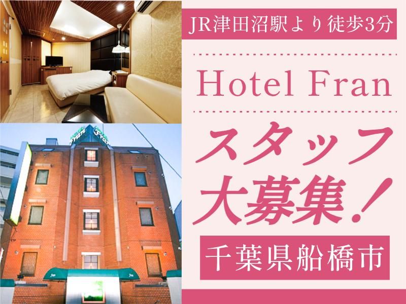 職場環境 ・。*キレイで可愛いホテルです*。・ 津田沼駅周辺ではあまりないデザイナーズホテル。 キュートな空間が広がる室内は、特に女の子から好評です♪ 茶色のレンガ風建物が当ホテルです。 *周りには大型ショッピングセンターや銀行、コンビニなどもあります!