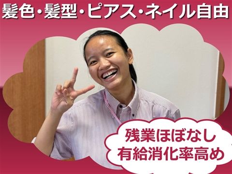 勤務時間 8:10~17:10、8:30~17:30 休憩60分 ※時間外月平均2時間