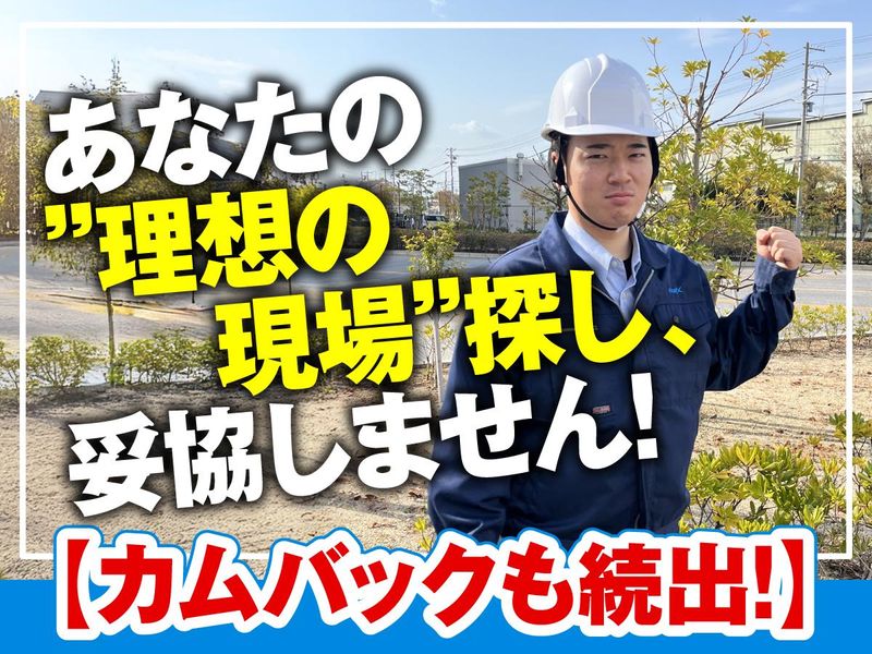 求めている人材 ✅施工管理経験のある方(年数・分野不問) ※学歴不問/年齢不問(20代~60代まで幅広く活躍中) ※経験が浅い方も、ブランクのある方も大歓迎 ※希望勤務地は最大限考慮 ================== もっと自分の経験を活かせる環境へ 施工管理経験者が“次の一歩”を踏み出す場所 ================== 「現場の意見がしっかり反映される環境で働きたい」 「担当者との距離が近く、安心して相談できる環境で働きたい」 「よりスケールの大きな案件で自分の力を発揮したい」 ──そんな想いを抱く経験者の方にこそ、 当社の環境を知ってほしいと思っています。 あなたの経験を“正当に評価”し、 現場に集中できるよう担当者が徹底フォロー。 納得のいくキャリアを築ける環境があります。 ◎50代・60代のベテランも第一線で活躍中! 施工管理としてのスキルを活かしながら、 無理のない働き方で10年以上キャリアを継続する方も多数。 現場・待遇・生活、どれも“妥協しない”転職を実現できます。 ◎女性施工管理者も増加中! 現場や案件の種類も豊富で、 女性の視点を活かした管理スタイルが評価されています。 安全・品質・工程の調整業務などで、 男女問わず長く活躍できる環境を整えています。 \当社は、あなたの“これから”を支えます/ ・大型案件・公共案件などキャリアの幅を広げたい方 ・現場管理のスキルを活かして、より高待遇を目指したい方 ・年齢を重ねても現役で働きたい方 ・「担当との信頼関係」を重視したい方 これまでの経験を活かして、 “理想の働き方”と“やりがい”の両方を叶えませんか?
