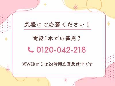 選考プロセス WEBまたは電話にてご応募ください。 WEBの場合は応募内容確認後に こちらからご連絡いたします。 電話の場合は「求人情報を見ました」と お伝えください。質問のみもOKです。 【選考の流れ】 1.応募 2.面接 3.入社 現在、他のお仕事をしている方も ぜひご応募ください。 面接日や入社時期はご相談ください。