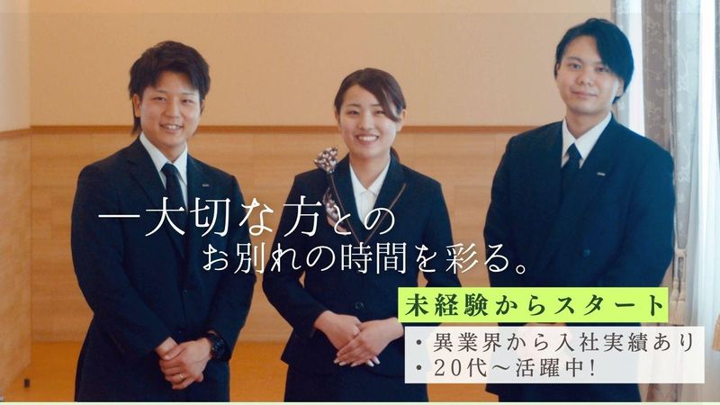 仕事内容 \20代〜30代の方へ/ 大切な人のお別れに寄り添うお仕事 ⭐アピールポイント ✅ 週休3日で休日多めの働き方 ✅ 異業種出身の先輩が多数活躍中 ✅ 手厚い研修制度で安心スタート ✅ 残業月平均10時間以下で働きやすい ✅ 将来は葬祭ディレクターも可能 ≪ セレモニースタッフのお仕事 ≫ 大切な方との最後のお別れとなる 葬儀・セレモニーの運営を サポートするお仕事です。 ご遺族の想いに寄り添い、 安心してお見送りできる時間を 支える役割を担います。 未経験の方でも、 研修と先輩のサポートで 少しずつ覚えていけるので 安心してスタートできます。 【具体的には・・・】 葬儀の設営・式進行サポート、 病院迎えの搬送・見積もり等の 葬儀に関する一連の業務をお任せします。 ※葬儀が入っていないときは 祭壇の掃除などの管理をお願いします。 ✨「ありがとう」を直接もらえる仕事  ̄ ̄ ̄ ̄ ̄ ̄ ̄ ̄ ̄ ̄ ̄ ̄ ̄ ̄ ̄ ̄ ̄ ̄ ̄ この仕事の一番のやりがいは、 ご遺族からいただく「ありがとう」の言葉です。 人生の大切な節目となる お別れの時間に寄り添い、 安心して故人様を送り出せるよう支える仕事。 ご遺族の不安や悲しみに寄り添いながら、 式典を丁寧に運営することで 心からの感謝をいただけます。 人の役に立つ実感を強く感じられる仕事で、 社会に必要とされる大きなやりがいがあります。 誰かの人生の大切な時間を支える仕事に 挑戦してみませんか。 ✨20代スタッフが多数活躍中! ――――――――――――――――― 同世代の仲間がいるから安心してスタートできます ▶20代〜30代が活躍する理由 多様なバックグラウンドから転職成功‼ ドライバー・工場勤務・飲食店・サービス・販売など 異業種から飛び込んだスタッフが多数活躍中。 ゼロからスタートして、 今では頼られるプランナーに成長しています。 ✨未経験でも安心の理由|研修制度 ―――――――――――――――――― 入社後は 2〜3ヶ月間、 先輩に同行 しながら仕事を覚えていきます。 最初は「会場でのお手伝い」からスタートし、 段階的にスキルアップ。 育てる環境がしっかり整っていますので、 未経験の方も安心です。 ▶葬祭スタッフでのお仕事のやりがい ・「あなたに任せてよかった」と感謝の言葉をいただける瞬間 ・ご家族の想いを形にし、最後の時間を支える誇り ・一生役立つマナーや接客スキルが身につく ・地域に根ざしたお仕事で、社会貢献を実感 ▶ キャリアの広がり ・葬祭ディレクターなどの資格取得を支援 ・経験を積んでリーダーやマネージャーへ ・若いうちからスキルを磨き、 専門職として長く活躍できます <メッセージ> 「人の役に立ちたい」 「感謝される仕事がしたい」 「手に職をつけて安定したい」 そんな想いをお持ちの方、ぜひ一度お話を聞かせてください。 あなたの想いを、私たちは大切にします。