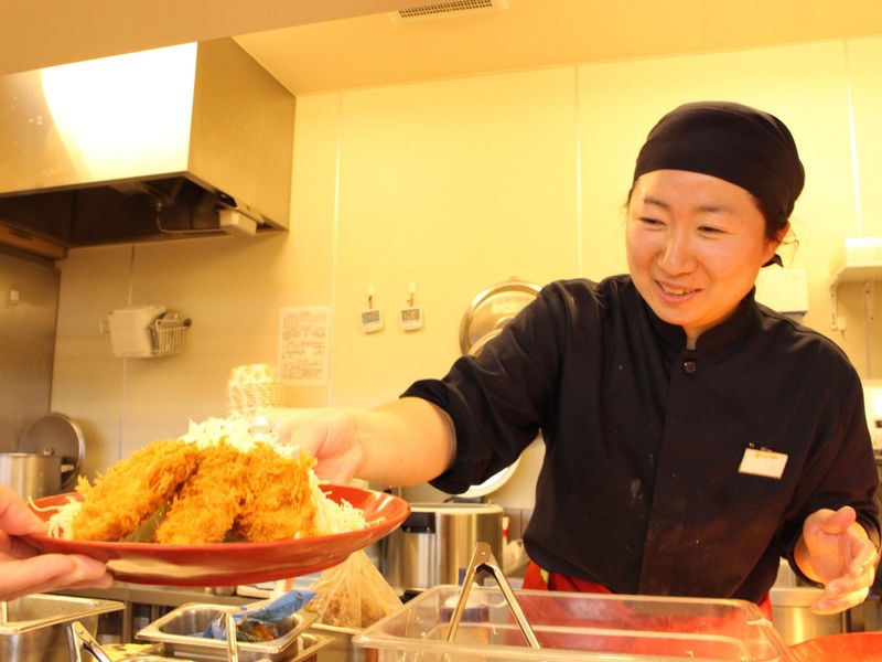 仕事内容 \おいしいとんかつが半額で食べられる!/ 嬉しいまかないあり!シフトは1週間毎でOK ステキなお店を作ってくれる<仲間>大募集 =・・=・・=・・=・・=・・=・・=・ 【仕事内容】 『かつや』でのホール・キッチンをお任せ! *接客・レジ・案内・配膳・テーブル片付け *店内清掃・消毒・盛り付けなど簡単な調理 ※カツを切る際に包丁を使う作業があります <まずは皿洗いから> できることから少しずつスタートできます! 経験がない方も安心してご応募くださいね! (1)メニューを覚えて (2)料理の提供に挑戦 (3)テーブル片付け (4)オーダー取り…と 順を追ってステップアップできる環境です! =・・=・・=・・=・・=・・=・・=・ <先輩の声> …Aさん(主婦/30代) ここのポイントはなんといってもスタッフの 仲の良さ!土日は少し忙しいけれど、自分の スキル上達が目に見えるので、楽しいです! …Bさん(学生/10代) 家が近いのとシフトの融通が利くので応募! 学校生活も優先できるし、急用ができても、 みんながカバーしてくれて助かっています! <店長より> 「今週いっぱい休みたいけど迷惑かけるかも」 「急に休まれても困る」などの不安解消に努め 休む側も休まれる側も、気持ちよく過ごせる 社内環境を整備!それに伴い、新たに仲間を 増員募集!働きやすさには自信があります! ~ ぜひ、お気軽にご応募くださいね! ~
