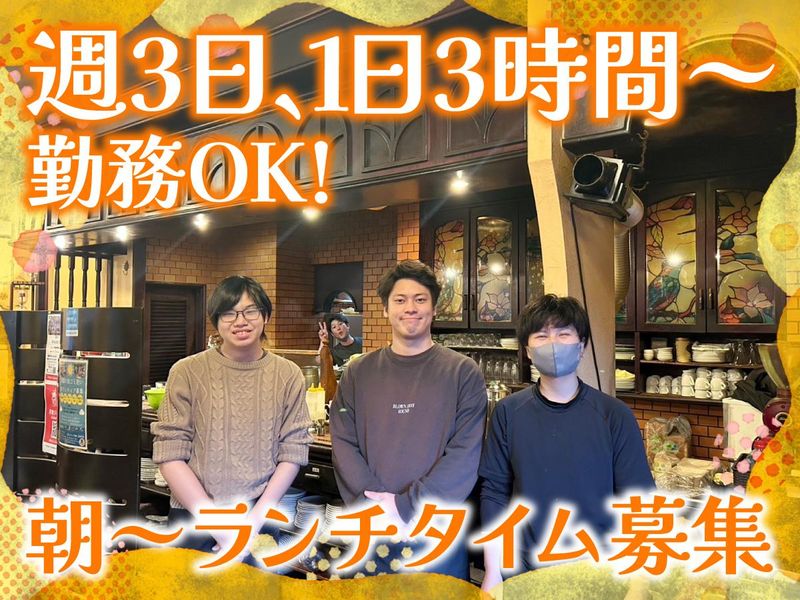 朝~ランチタイムの募集!絶品まかない付★髪型髪色・ピアス自由