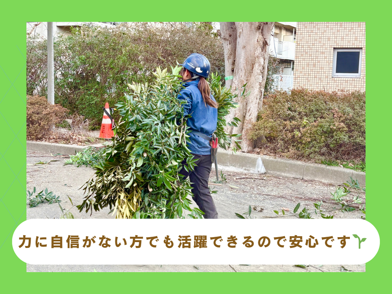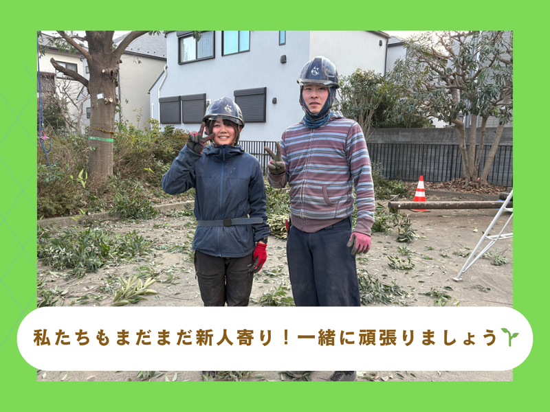 仕事内容 ⋆―― ⋆⋅☆⋅⋆ ―――― ⋆⋅☆⋅⋆ ――⋆ 未経験でも同世代より給与は高め。 性別関係なく活躍できるし、 手に職をつけて働きたい。 だからこそ選んだのは造園業。 ⋆―― ⋆⋅☆⋅⋆ ―――― ⋆⋅☆⋅⋆ ――⋆ "しっかり稼いでしっかり休むを実現!" 現在女性スタッフも大活躍中♥ \ "女性も働きやすいポイント" / ♥意外と力作業が少ない♥ 切った枝を運んだりする際は 少し力が必要な時もありますが… 工夫次第では 最小限の力で運ぶことができるので、 キツイなと思うことも少ないです! 実際に女性スタッフも活躍しており 業界でも女性が増加傾向なので、 働きやすい職種へと成長しています✨ ♥体力よりも繊細さが大切♥ 力勝負や体力勝負というよりも 植物を扱うお仕事なので、 繊細さやこだわりなどが重要なお仕事。 なので性別関係なく、 活躍できるお仕事です! ♥アイドル的存在になれちゃう!笑♥ 業界の女性比率としては20%ほどで、 まだまだ少ない状況ですが… だからこそ女性スタッフが 重宝されています! 植物が好きな方や 何かをつくるのが好きな方には オススメのお仕事です✨ \ ⛅仕事内容⛅ / 造園作業員業務をお願いします。 基本的に現場は従業員全員で行くので、 みんなで分担して作業をしていきます! <具体的には…> ・樹木の剪定や伐採 ・刈ったあとの草木の片づけ ・草刈り作業 ・運搬作業 ※普通自動車免許を持っている方は運転をお願いすることもあります。 など <未経験の方は…> 切った枝の片づけや 安全確認(※)などの作業からスタートします。 枝を集めてトラックに運ぶだけなので、 難しいことはありません! 経験がなくてもすぐ活躍できます✨ ひとりだちまで3年ほどですが あまり焦らずじっくりと、 仕事を覚えていただければと思います! ※安全確認とは※ 梯子に上って作業する方が 安心して作業できるように下で見守る作業です。 <担当エリア> メインは多摩地区の公共施設、公園、学校等などです。 ※一部23区や埼玉(所沢など)もあります。 ※皇居や宮内庁なども担当してます。 \ ⛅仕事のこだわり⛅ / 現場は社長含め全員同じ現場で 作業することを心掛けています。 全員で作業することにより 残業しないで早く作業できるだけでなく、 ✅じっくり新人さんへの指導をしたい ✅じっくり技術の指導や継承をしたい ✅チームワークを高めたい という点を大切にしているため、 当社では全員同じ現場で作業をしています! 新人さんが置いてけぼりになったり スキルアップできず毎回同じ作業をしたり、 なんてこともなく、 新人さんも中堅さんも成長できる環境です✨ \ ⛅一緒に働く先輩たちは…⛅ / 当社はベテランの先輩だけでなく、 入社3年以内の若手の先輩も在籍しています! 年齢も20~50代と幅広く活躍中です✨ 先輩たちは優しくて おっとりしている方々ばかり! 厳しすぎる上下関係などはなく、 のびのびと働けるのが魅力です✨ \ ⛅当社のPOINT⛅ / ✅珍しい現場は冒険みたいで楽しい!笑⭐ ※定期的に皇居や宮内庁など、 珍しい現場に行くことも…! 普段入れない場所に行けるので、 少しワクワクします✊笑 ✅免許や資格は不要 普通自動車免許や仕事に関わる資格は 当社では一切不要です。 ✅資格取得支援制度あり キャリア・スキルアップのための資格取得は 会社全額負担で資格取得が可能です! 技術を直接指導するだけでなく 費用面もサポートができるので、 会社と共に成長できればと思います✨ ✅残業はほぼありません! 当社では働く時間の管理を 特に徹底しており、 ほとんど残業はありません。 遠方の現場の場合にも 17時まで仕事せず早めに切り上げ、 遅くてても18時には 退社できるように調整しています。 "1日が仕事だけで終わるのではなく、 家族や友達や自分の時間を大切にして欲しい!" というのが当社のモットーです! そのため仕事が終わったら、 キックボクシングをしたり友達と遊んだり、 家族と食事をしたり… 社長を含め従業員全員、 アフター5を楽しんでいます✊ ぜひ当社に入社されたら、 アフター5を楽しんでください✨ ✅賞与は年3回支給 ✅退職金制度で安心感◎ ✅交通費規定内支給 ✅家族手当支給 ✅その他手当支給 ✅直行直帰も相談可能 ✅早く終わった場合も給与保証 ✅実働は7時間程度! ✅車・バイク・自転車通勤可能!