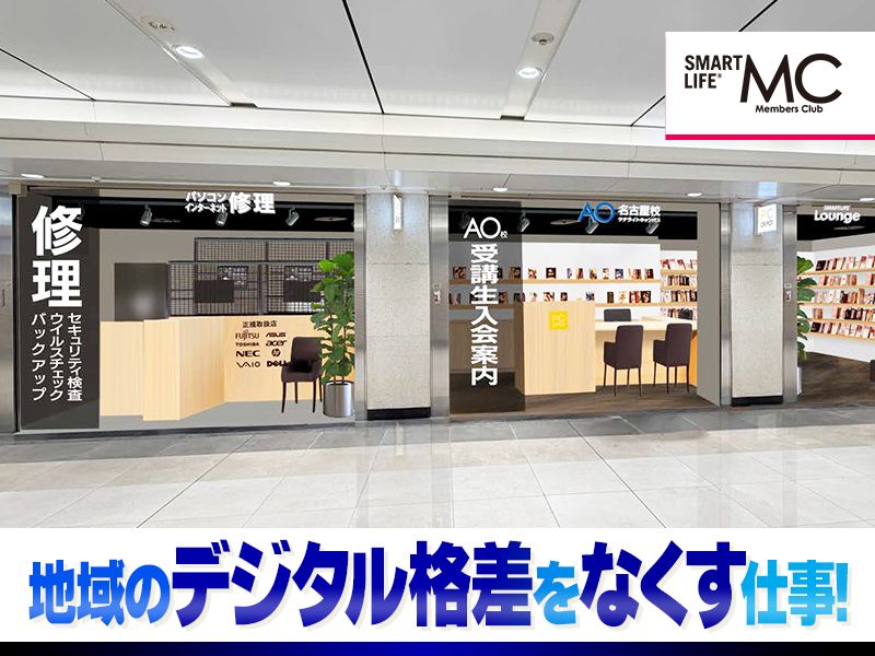 仕事内容: ⭐️2026年3月に移転オープンしました!⭐️ ⭐️オープニングスタッフ大募集!⭐️ 【デジタルライフプランナーとは?】 パソコン・スマートフォン・デジタル家電などを お客様のご家族やライフスタイルに合わせて ご提案・サポートする仕事です! 例えば… ✅LINEやキャッシュレスの使い方が分からない ✅スマートフォンの料金プランを見直したい ✅セキュリティ対策ってこれでいいのかな など会員様のお話をしっかり聞きながら 会話を楽しんで アドバイスやサポートを行います! 会員様ご本人だけでなく、 会員様のご家族も含めて 快適なデジタルライフを送れるよう、 継続的なフォローをするお仕事です。 \ 春から新事業をスタート予定! / デジタルライフプランナーを育成していく アカデミア事業を開始します。 店舗内に、学び専用のブースを設けて デジタルライフプランナーの資格取得を 目指す人材を育成していきます。 \ ここがポイント / 仕事をしながらIT知識が身につきます! ITやデジタル業界が初めての方もご安心ください。 まずは研修からスタートし、 基礎からしっかり学べます。 弊社では「スキルチェックシート」を活用し、 できること・これから習得することを可視化。 現場スタッフが丁寧にサポートするので、 着実に知識やスキルを身につけられる環境です。 【職種】 デジタルコンシェルジュ デジタルライフプランナー デジタルコーディネーター スクール講師 【雇用形態】 正社員