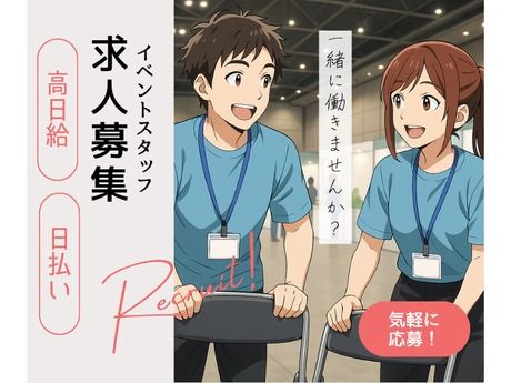 仕事内容 ==この求人のアピールポイント== ▼今回募集している案件はコチラ! ※シフト時間に変動がある可能性があります。 2/12(木)00:00~07:00 日給13,000円 2/12(木)09:00~17:00 日給11,500円 2/14(土)17:00~22:00 日給8,500円 ▼1日参加で稼げる!日払いOK 高日給×日払いで即収入GET★ 初めてでも安心◎友達と一緒の応募も歓迎! ※友達紹介で500円ボーナスあり※ ▼副業・Wワーク歓迎! 副業者多数活躍中!スキマ時間を有効活用◎ お仕事や学校のがお休み日に、 平日の空いた時間,週末だけのなど、 プライベート優先で自由自在に勤務OK! ▼初回参加多数!未経験歓迎! わからないことは何でもすぐ相談して下さい! 仕事は社員さんが声を掛けながら、 明確な指示出しをするので、何をすれば いいかわからないなんてことはありません! 単純作業メインで未経験の方でも問題なく活躍可能です! - 【仕事内容】 学会会場の会場設営の作業を行います。 複数人で協力し合いながら作業するので、 未経験の方でも安心して取り組むことが可能です! 友人同士の応募もOK! お気軽にご応募ください♪ ~当日の流れ例~ ※作業する案件毎にスケジュールは変わります。 現地15分前集合→朝礼→チーム分け→作業開始 - 【求める人材】 ▼未経験歓迎!大学生OK! ▼体を動かすのが好きな方 ▼チームワーク重視の方 ▼元気な挨拶ができる方 <歓迎条件> ・高卒、専門卒、大卒の方 ・新卒、第二新卒の方 ・業界/職種の未経験歓迎 ・副業、フリーターの方 ・仕事にブランクがある方 ・扶養内で働きたい方 <活かせるご経験> 送迎ドライバー、配送ドライバー、 uber、出前館、didi foods等の配達員を やってみようかな...とお考えの方も歓迎! レストラン、居酒屋、スーパー、ホテル、コンビ二などでの接客・販売、 鳶職、現場仕事、軽作業、解体工事、建築作業員、 土木作業員、物流、倉庫内軽作業、食品製造、調理士など 他職種・他業種とのWワークをお考えの方もお待ちしております!!