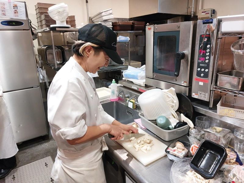 職場環境 現在、社員は20~40代が中心です。ランチやディナーなどのピーク時はテキパキ、アイドルタイムは仕込み中心で声を掛け合いながら調理業務をしています。ホールとの連携や会話が多いのも特徴です。ポジションも分かれており、新人さんも質問しやすく覚えやすい環境です。 喫煙所:なし(敷地内全て禁煙)