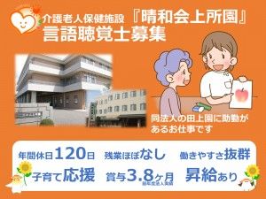 インフォメーション 上所園と田上園でのお仕事!たくさんの患者様、入所者様、利用者様があなたの活躍を待っています☆ 医療法人社団 晴和会(新潟市)は、1998年に産科婦人科クリニックから始まり、 療養型病院、介護老人保健施設、通所リハビリ、居宅介護支援事業所、訪問看護・訪問介護ステーション、住宅型有料老人ホーム、保育園など、 多彩な医療・介護・子育て支援サービスを地域に提供する包括的な医療法人です。 少子化・超高齢化が進む中、「患者様・入所者様・利用者様・ご家族様が望まれるもの」を追求する姿勢を大切にし、 地域医療と在宅介護の両方に貢献しています。看護・保育職を安心して志す方のため、 奨学金制度や資格取得奨励制度など、キャリア支援制度が充実しています .